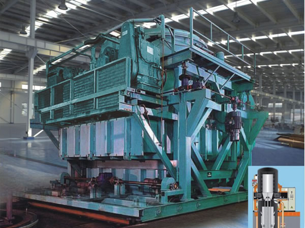 Vertical two-chamber vacuum furnace designed to harden in oil products alloyed structural steel, high speed steel, high-strength steel, M300 steel, in particular for the hardening under vacuum rods, panels, long shafts, aircraft landing gear or similar components easily deforming in effective termoobrabotke.Otlichnoe cooling minimizes liner dlinnyhs parts, improving the quality properties of the structure.
